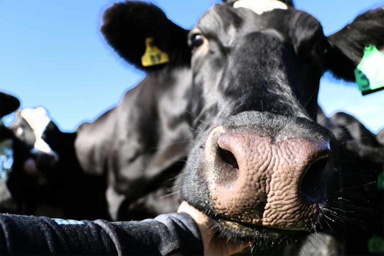 Andrea’s Pedigree Holstein Friesian cows  – with baby claves at foot – graze freely on a pasture-only diet producing premium quality organic A2 milk.